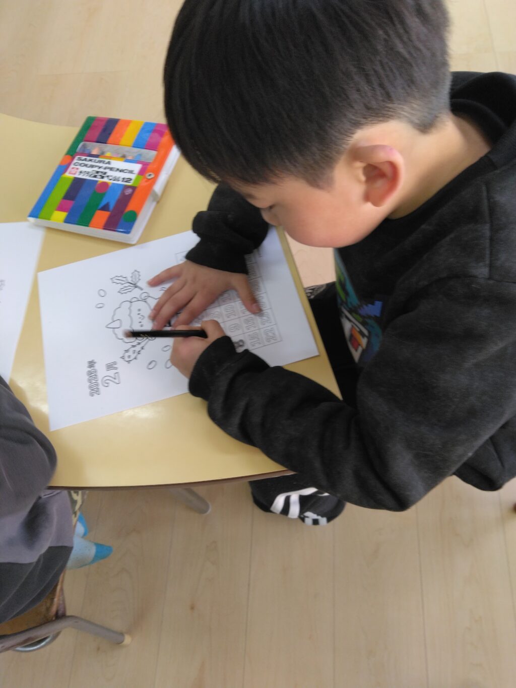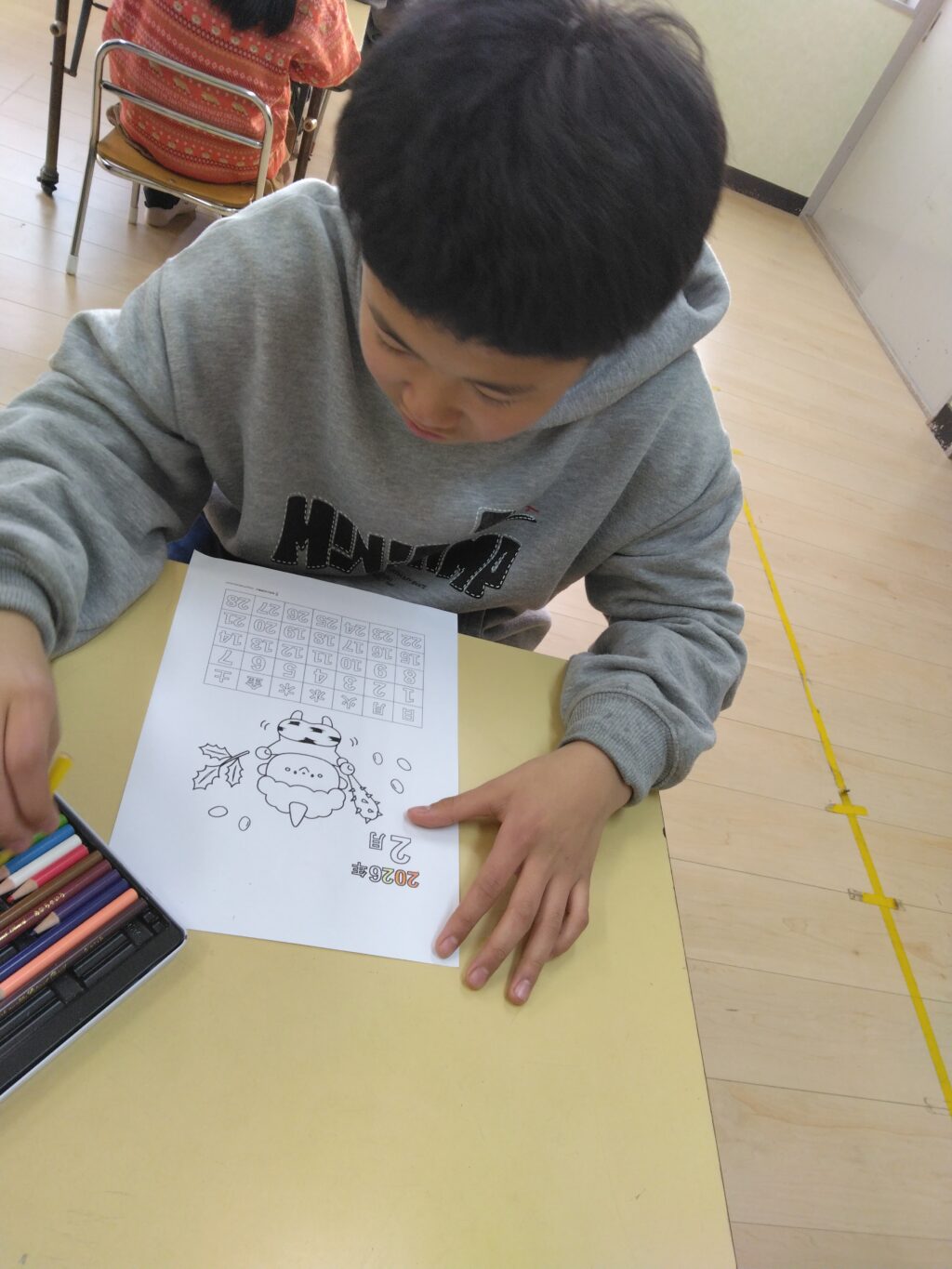 Kきっずみぶでは、社会性クラスがあります。そのクラスでの活動として、2月のカレンダーを塗り絵しました。