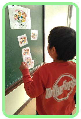 この日はSnowManとクレヨンしんちゃんのカードです。ロッカーの中に隠れているもの、新聞紙等の廃材の中に隠れているものなど、お題となっているカードを一生懸命に探します。