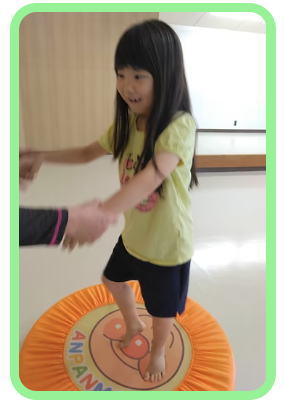 講堂の中でも、鬼ごっこをしたりバランスボールやトランポリンで遊んだりと、楽しそうな笑い声が響いていました。中にはサッカーをするお友達も☻