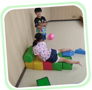 梅雨に入り、雨が降りやすくなる時期になりましたね。この日は講堂で遊びました。