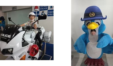 写真可能なスペースでは、実際に白バイに乗ってみたり顔はねパネルに顔をはめてみたりと、大興奮な子ども達でした!