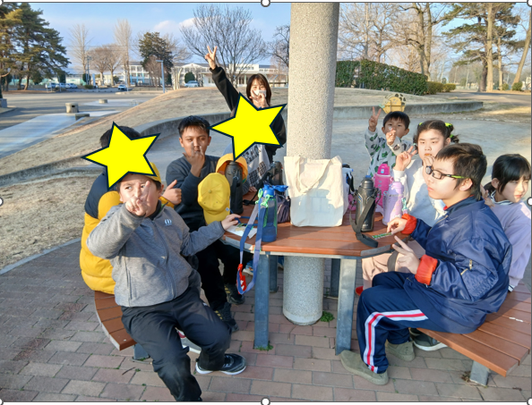 この日は風もなく暖かい日だったので、大平運動公園に行ってきました!遊び始める前にはしっかりとお約束事を確認し、時間を守って遊びました。お友達とのボール遊びやアスレチックにのぼって滑り台を何度も滑り、たくさんの笑顔がみられました。たくさん動いた後は、お待ちかねのおやつ時間!!好きなおやつを1人2つ選び、みんなで楽しく美味しく食べました。最後に「ハイ、チーズ!」と声を合わせて記念写真を撮りました。