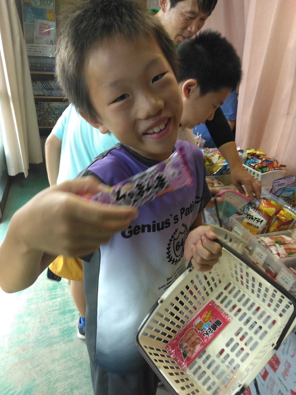 1枚の百円玉をそれぞれに握りしめて、自分たちで欲しいものを選び、値段の計算をしてお買い物をしました。
