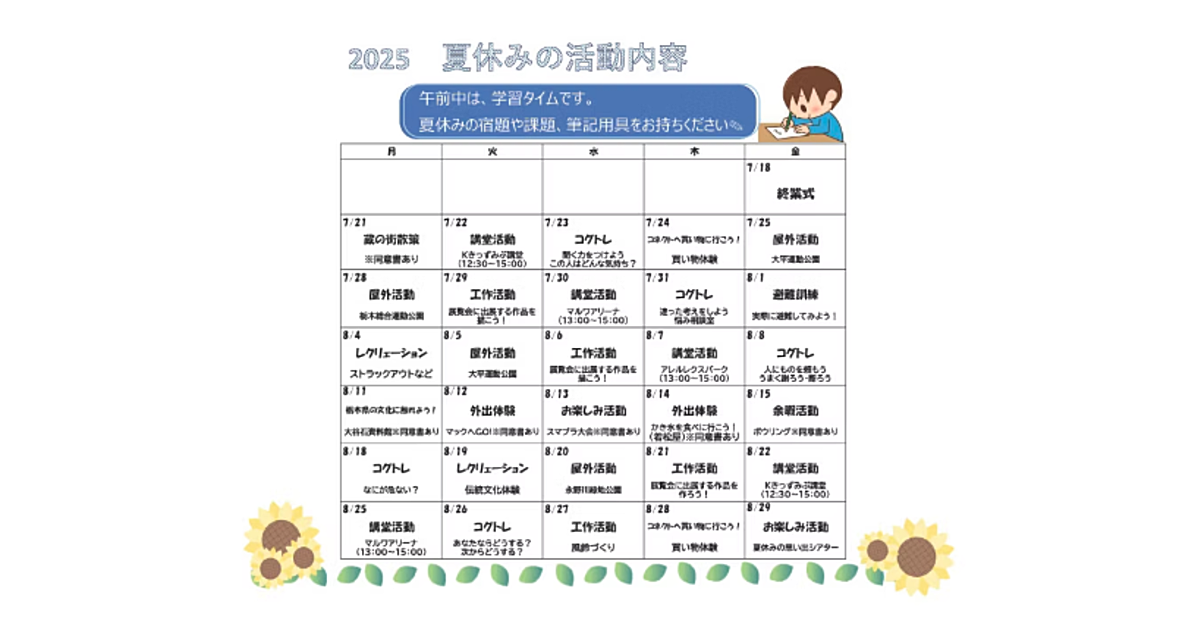 Kvell栃木教室は県から指定を受け、地域の事業所ともつながり、安心してご利用いただける事業所です。